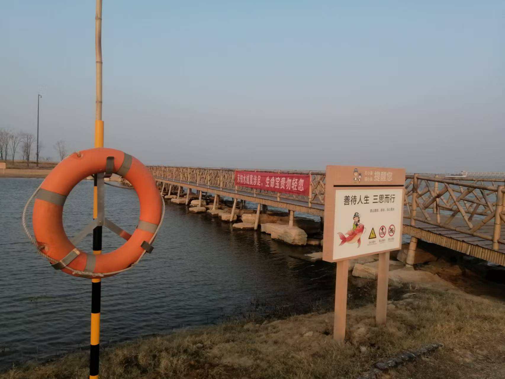 一是增加警示標(biāo)語。駿通公司在漁人碼頭、黃金沙灘等示范點(diǎn)原有標(biāo)語警示牌基礎(chǔ)上,針對(duì)冬季安全生產(chǎn)安全隱患,增加一系列安全標(biāo)語、警示牌、橫幅,“冰面行走需謹(jǐn)慎,安全第一記心間”、“未知水域莫涉足,生命寶貴勿輕忽”等,提醒游客和工作人員時(shí)刻保持警惕,牢記防溺水的重要性。