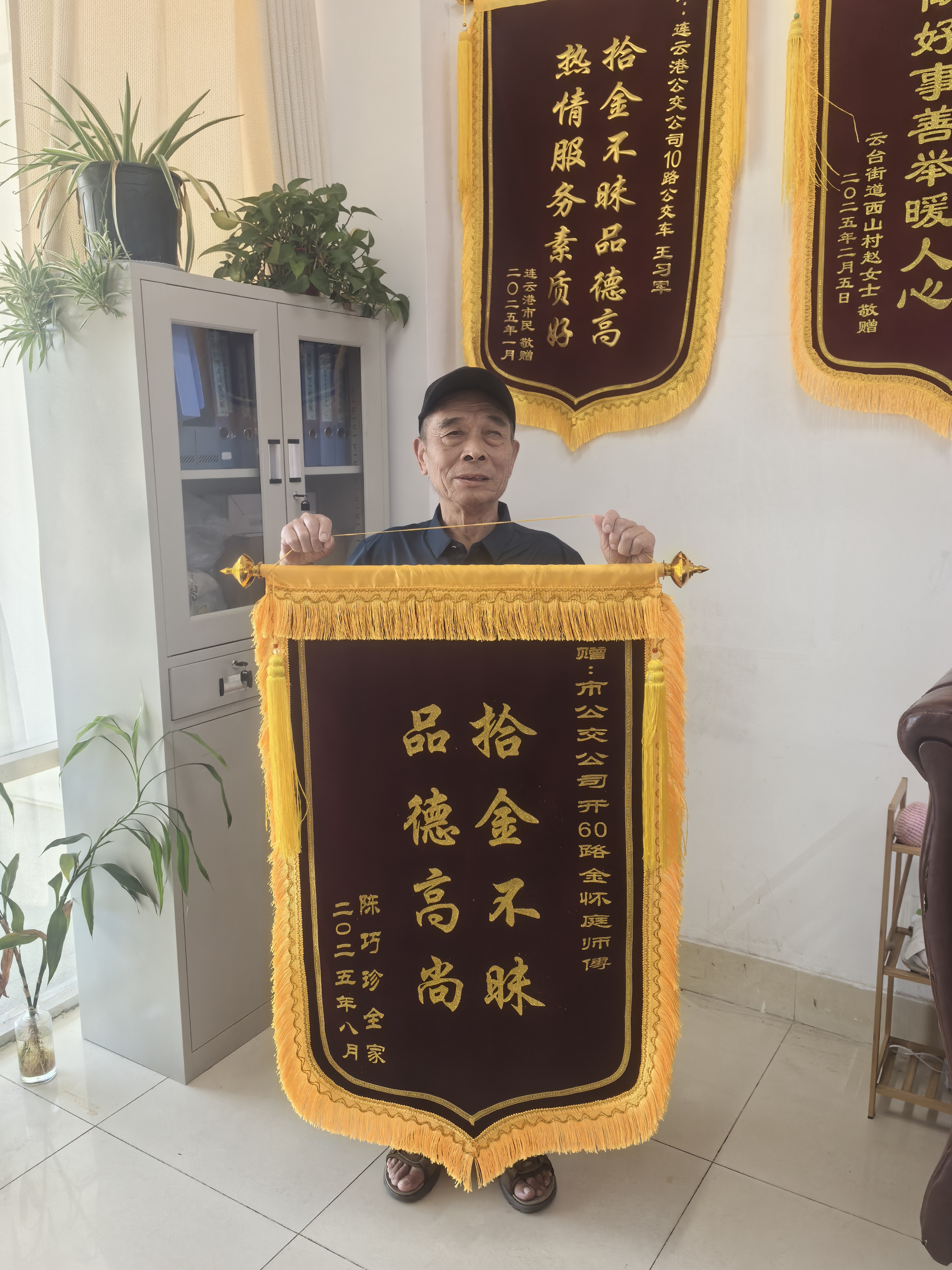 8月18日上午,一位年過七旬的老人將一面錦旗送至公交集團(tuán)新華公交場站車隊(duì)辦公室,對60路駕駛員金懷庭表達(dá)感激之情。