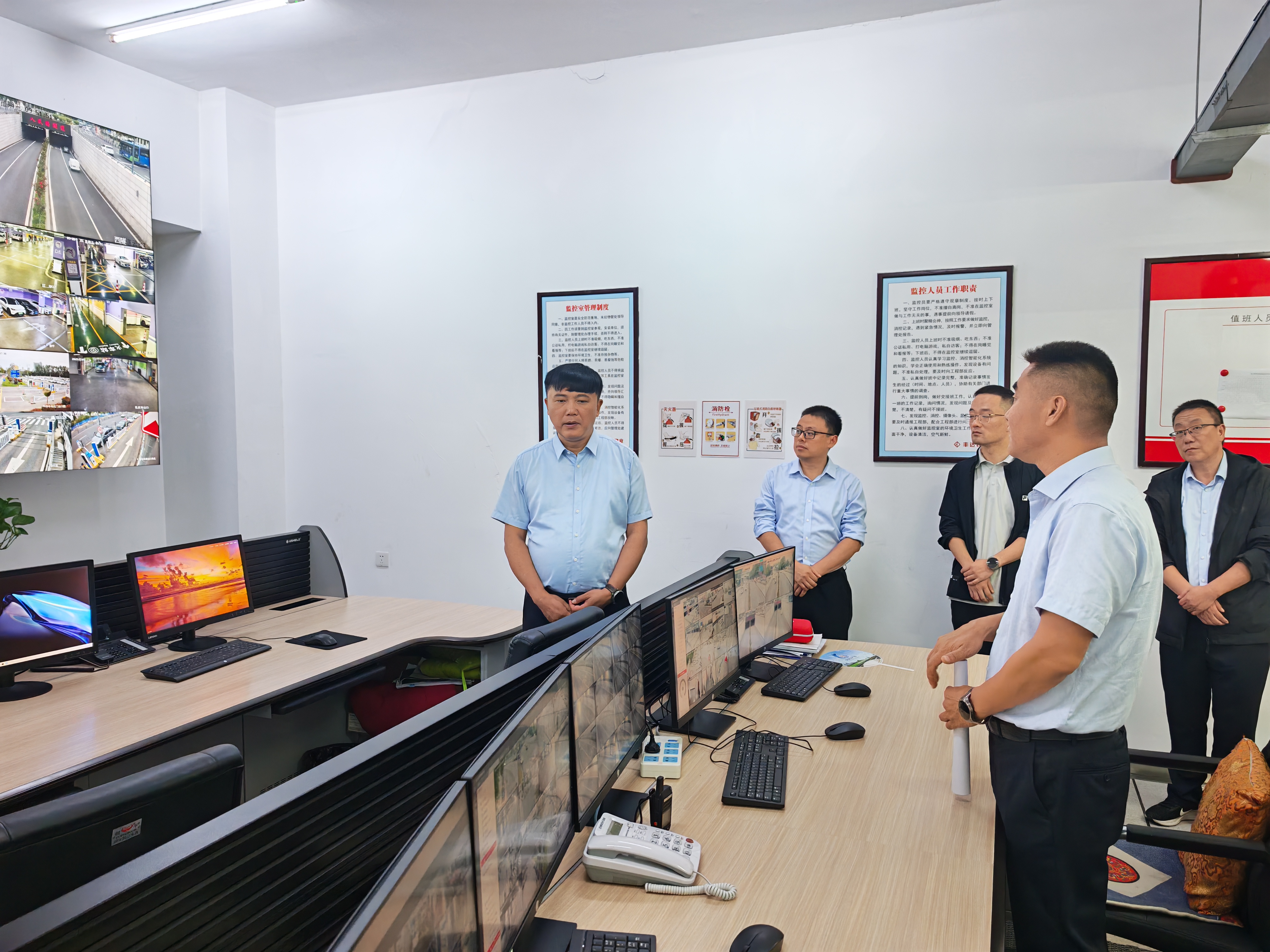 戴衡一行深入綜合客運(yùn)樞紐P1地下停車場,實(shí)地查看收費(fèi)室、中央控制室等重點(diǎn)區(qū)域,并通過視頻監(jiān)控系統(tǒng)實(shí)時(shí)調(diào)閱出站口、進(jìn)站口、出租車上客點(diǎn)、人民路隧道等關(guān)鍵點(diǎn)位的運(yùn)行畫面,詳細(xì)了解節(jié)日期間安全保暢措施、值班備勤安排及日常運(yùn)營管理情況,重點(diǎn)檢查了停車場智能化系統(tǒng)運(yùn)行狀態(tài)和現(xiàn)場標(biāo)識引導(dǎo)設(shè)置。