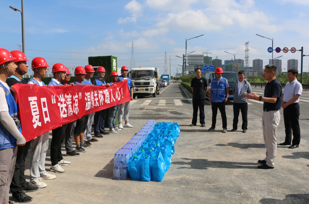 為切實(shí)做好夏季防暑降溫工作,保障職工安康權(quán)益,近日,集團(tuán)開(kāi)展“夏季送清涼”活動(dòng),集團(tuán)黨委書(shū)記、董事長(zhǎng)仲偉濤,集團(tuán)總經(jīng)理孫中華分別帶隊(duì)深入一線場(chǎng)站、班組、工地走訪慰問(wèn)在高溫天氣作業(yè)的一線職工,為他們送去洗漱套裝、礦泉水、人丹、風(fēng)油精等物品。集團(tuán)黨委副書(shū)記、工會(huì)主席陳金師陪同慰問(wèn)。