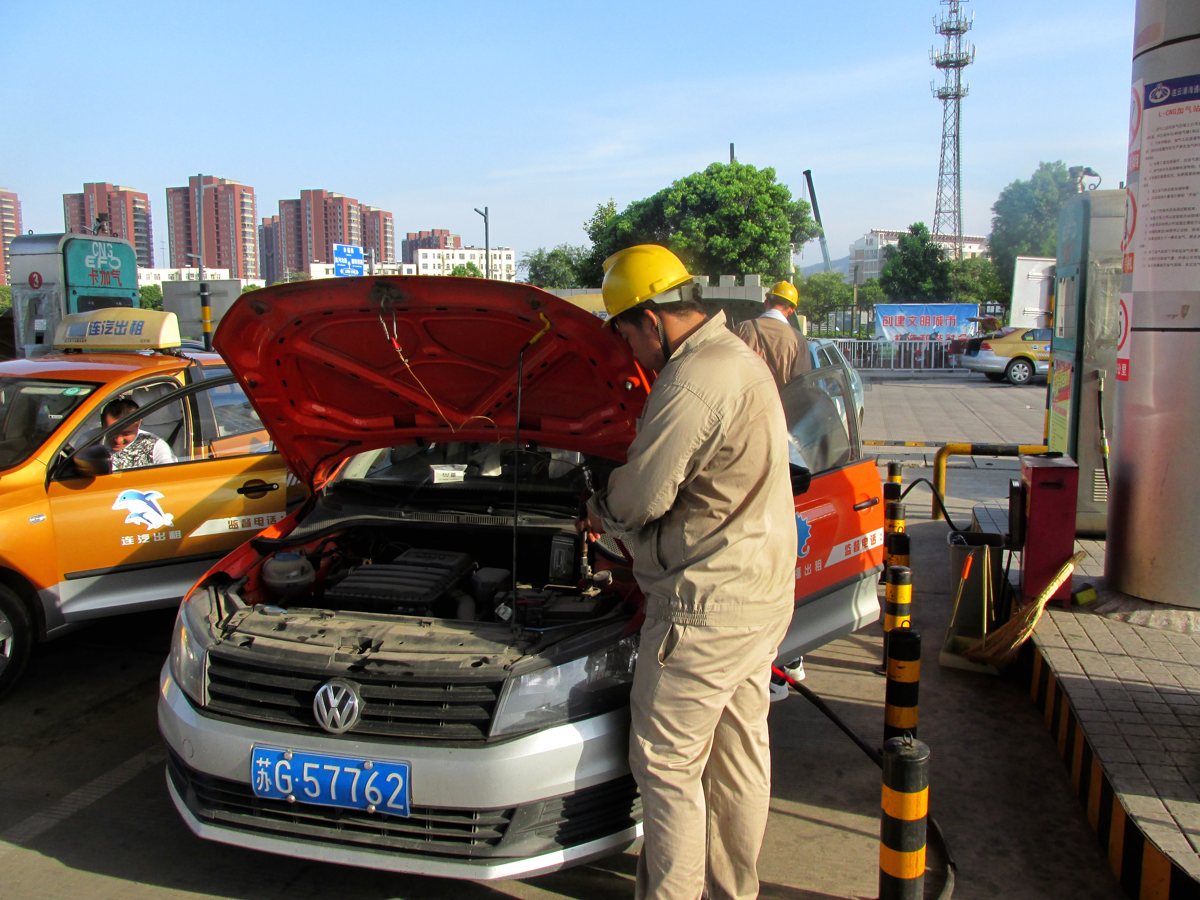 看看王若丞的裝備,安全帽、長袖防靜電工裝、防凍手套、防靜電鞋,大熱天這樣穿滋味實在不好受。偶爾停下來,王若丞依然待在現(xiàn)場,隨時待命?!懊刻煲o近百輛公交車、長途車加氣,遇到高峰期,這個數(shù)字還得變大?!蓖跞糌┮贿呎f,眼睛卻絲毫沒有離開加氣機。