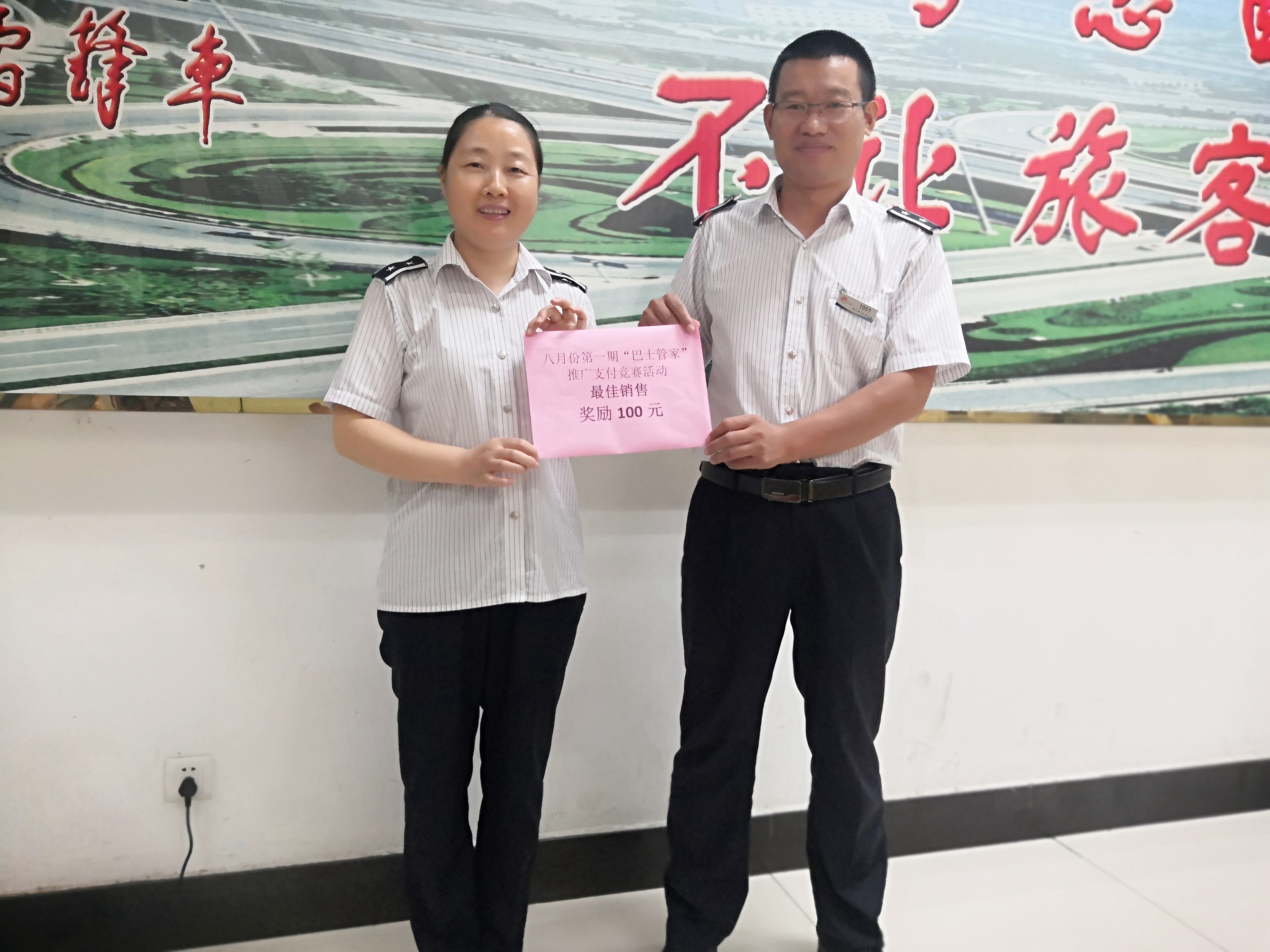 8月19日下午,經(jīng)過10天的比拼,總站劉雅輝、譚海燕,蘇欣站李春燕、韓娟分別獲得最佳銷售稱號(hào),并領(lǐng)取了相應(yīng)激勵(lì)。經(jīng)數(shù)據(jù)對(duì)比,在競(jìng)賽周期內(nèi),市區(qū)兩站“巴士管家”推廣量、出票量均顯著增長(zhǎng)。
