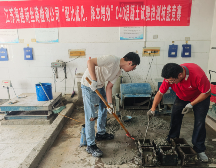 當(dāng)前,C40混凝土“配比優(yōu)化、降本增效”技能競賽正在江蘇海建新絲路檢測公司順利開展。這場以提升混凝土配比技術(shù)、實(shí)現(xiàn)降本增效為目標(biāo)的競賽,吸引公司各科室技術(shù)骨干積極參與,目前各項(xiàng)比拼環(huán)節(jié)正有序推進(jìn)。