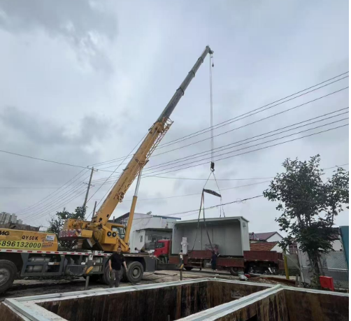 近日,海建公司北廣場項目部雨污水泵站預(yù)制艙順利吊裝到位,標(biāo)志著該項目關(guān)鍵節(jié)點順利完成,為泵站的安裝及工程建設(shè)奠定堅實基礎(chǔ)。