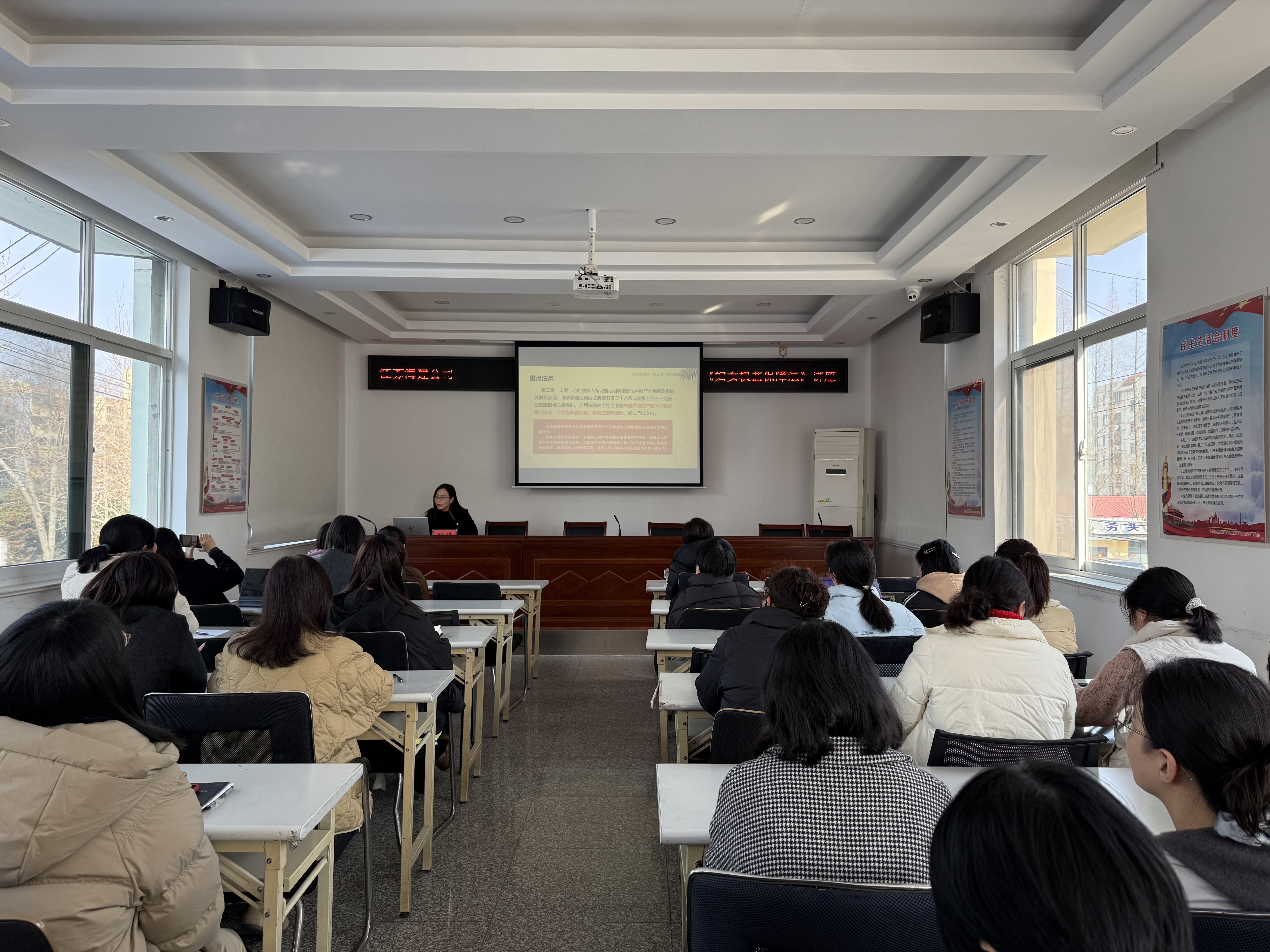 講座以“與法同行·守護幸福——民法典婚姻家庭編司法解釋二女性權(quán)益專場”為主題,海建公司40余名女職工積極參與。穆倩律師以其深厚的法學功底和豐富的實踐經(jīng)驗,深入淺出地解讀《民法典》中關于婚姻家庭的相關法律規(guī)定,特別是針對女性權(quán)益保護的部分進行詳盡闡述。同時結(jié)合生動的案例,讓法律條文通俗易懂,贏得在場女職工的陣陣掌聲。講座結(jié)束后,為進一步鞏固學習成果,公司工會專門增加一場女職工權(quán)益競賽測試。試題緊密圍繞講座內(nèi)容,旨在檢驗女職工們對《婦女權(quán)益保障法》及相關司法解釋的掌握情況。女職工們積極參與,認真答題,展現(xiàn)良好的學習態(tài)度和扎實的法律知識基礎。