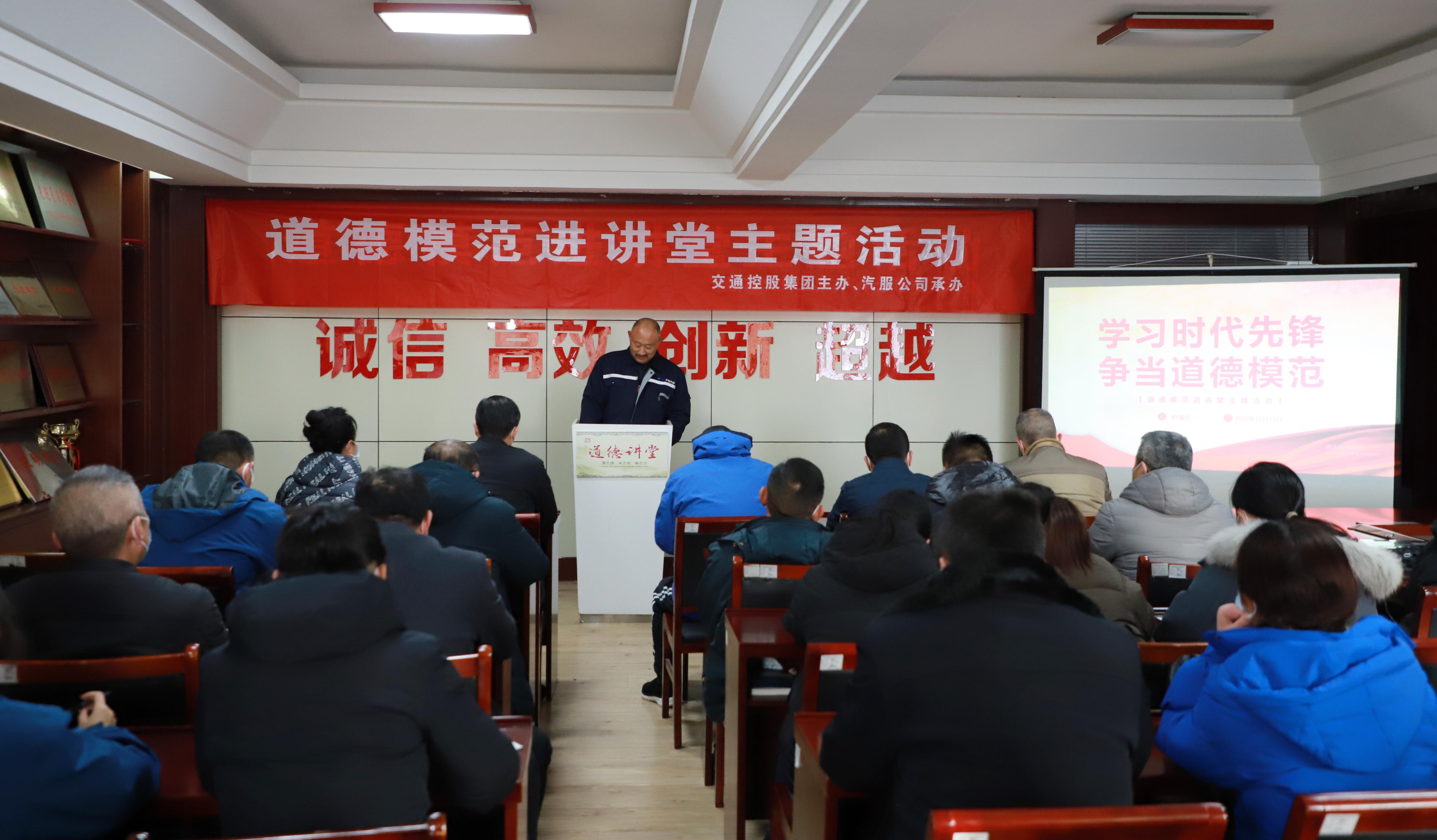12月13日下午,由交通控股集團主辦、汽服公司承辦的道德模范進講堂活動在汽服公司三樓會議室拉開了序幕,活動邀請“江蘇省勞動模范”何錫忠同志進行宣講,公司領(lǐng)導(dǎo)班子成員出席活動,各事業(yè)部干部職工代表共40余人參加活動。