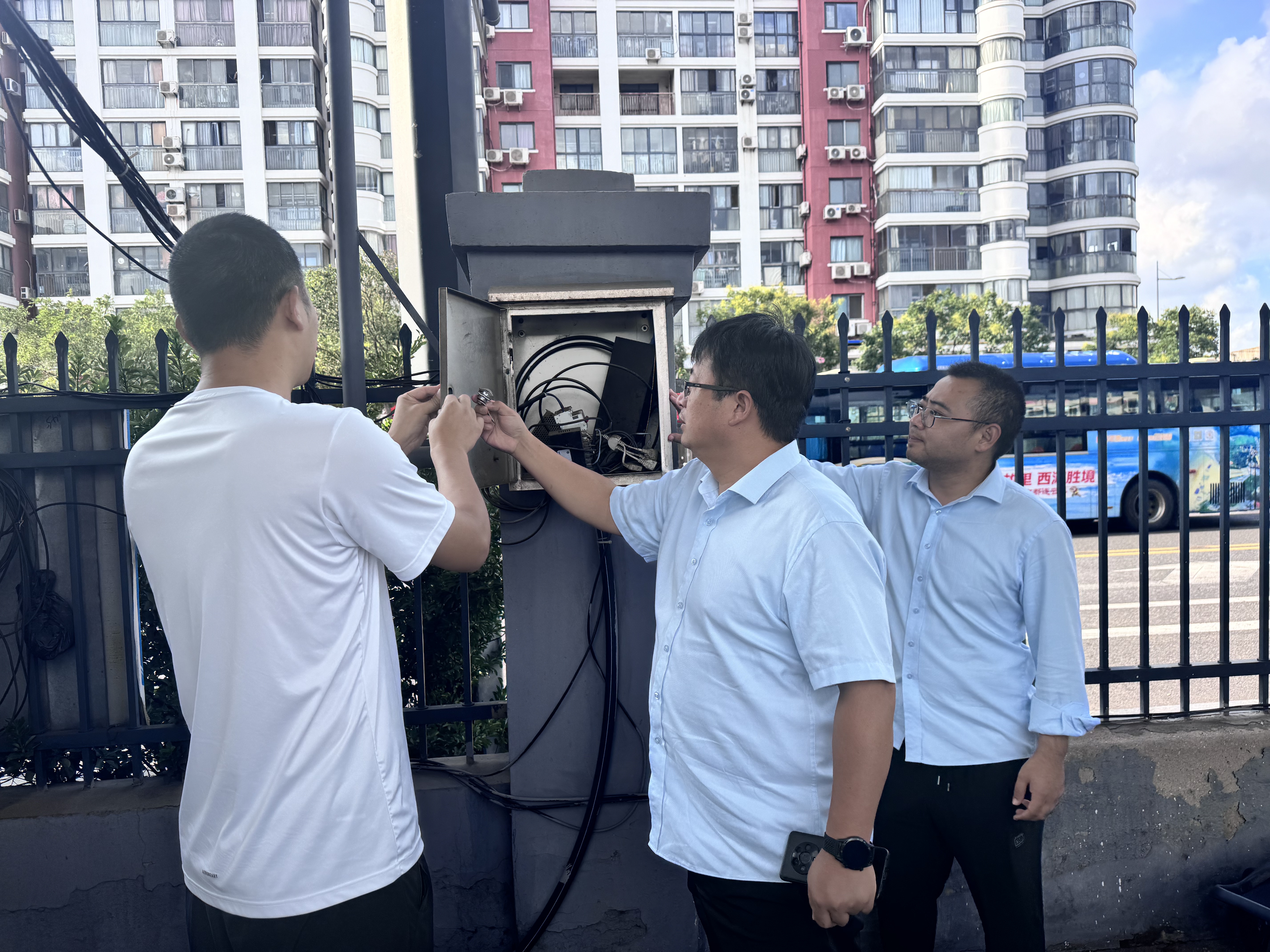 離開久和總站,排查小組前往大港路區(qū)域。在這里,張作重點(diǎn)查看消防設(shè)施配備與維護(hù)情況,逐一檢查滅火器壓力是否正常、噴管是否完好,查看消防通道是否暢通,有無物品堆放阻礙通行;同時(shí),對區(qū)域內(nèi)的臨時(shí)用電設(shè)備進(jìn)行核查,確保接線規(guī)范、防護(hù)措施到位。此外,他還與現(xiàn)場工作人員深入交流,了解日常消防安全管理流程,強(qiáng)調(diào)要將消防安全責(zé)任落實(shí)到每個崗位、每個環(huán)節(jié),定期開展自查與演練,讓安全意識深入人心。